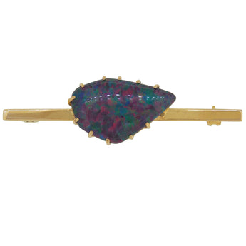 A modern, 9ct yellow gold, opal triplet set bar brooch.