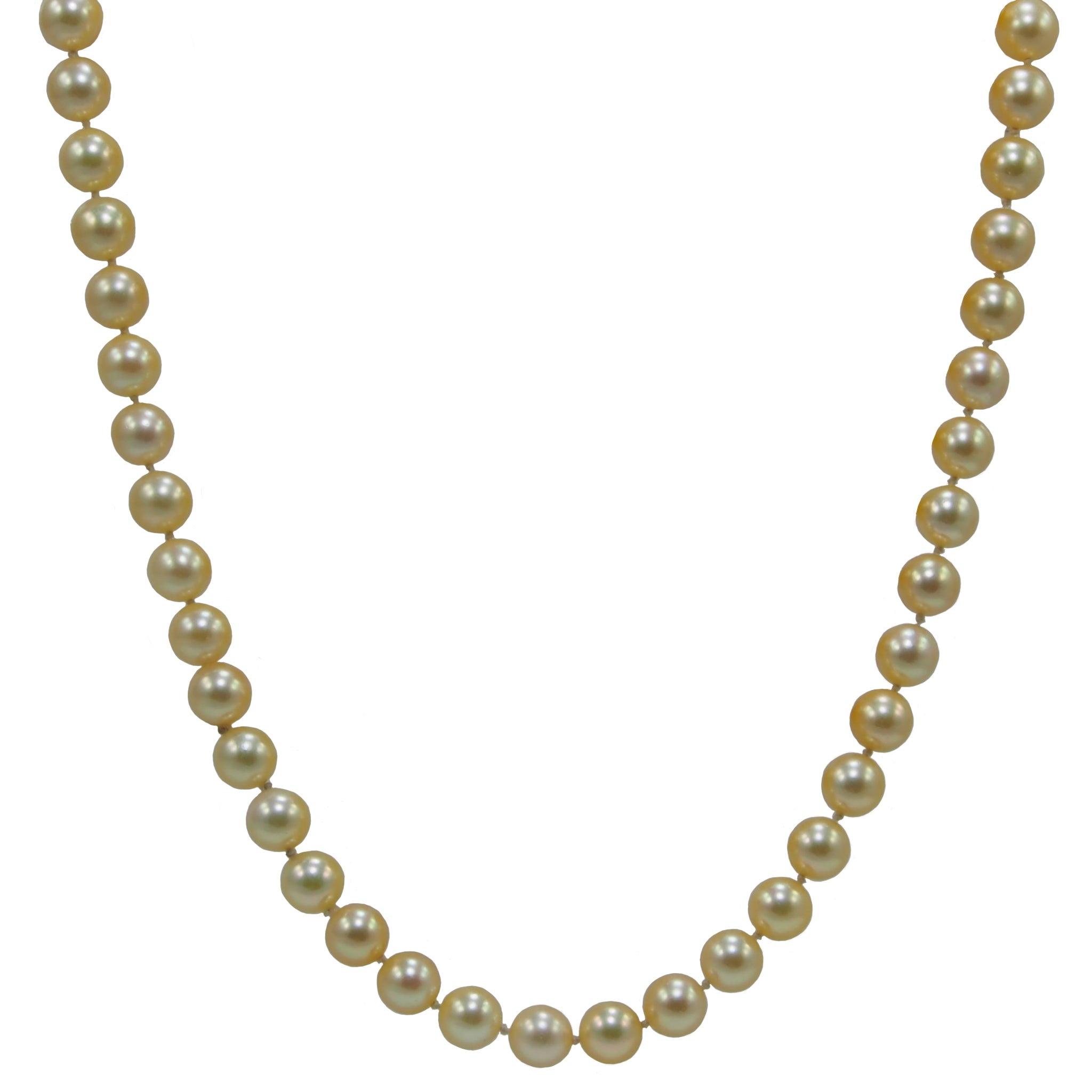 A long, continuous, single row of cultured pearls.