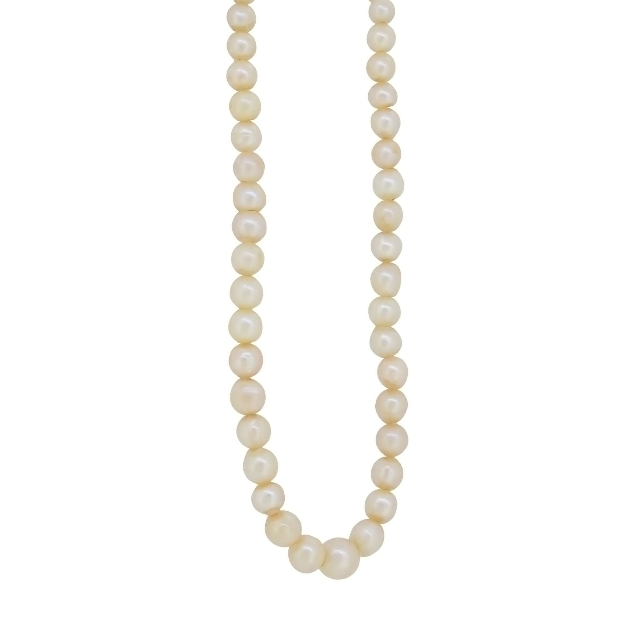 A mid-20th century, single row of graduated cultured pearls on a silver snap.