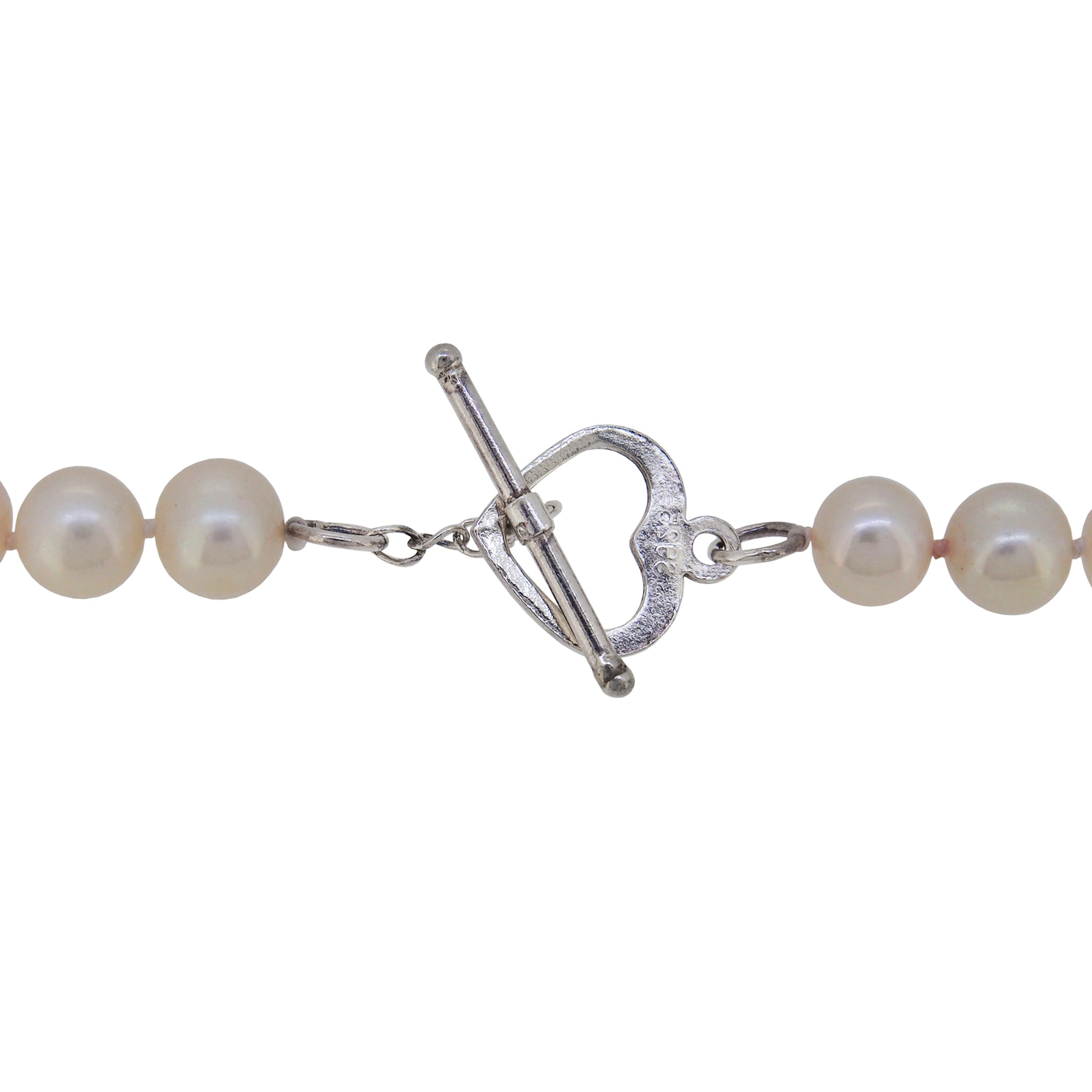 A modern, single row of cultured freshwater pearls on a silver toggle.