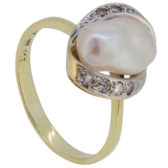 A modern, 14ct yellow gold, blister pearl & diamond set, nine stone ring.