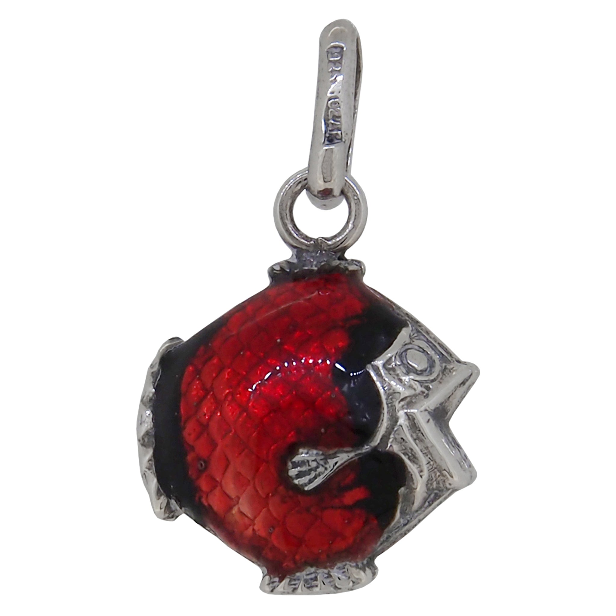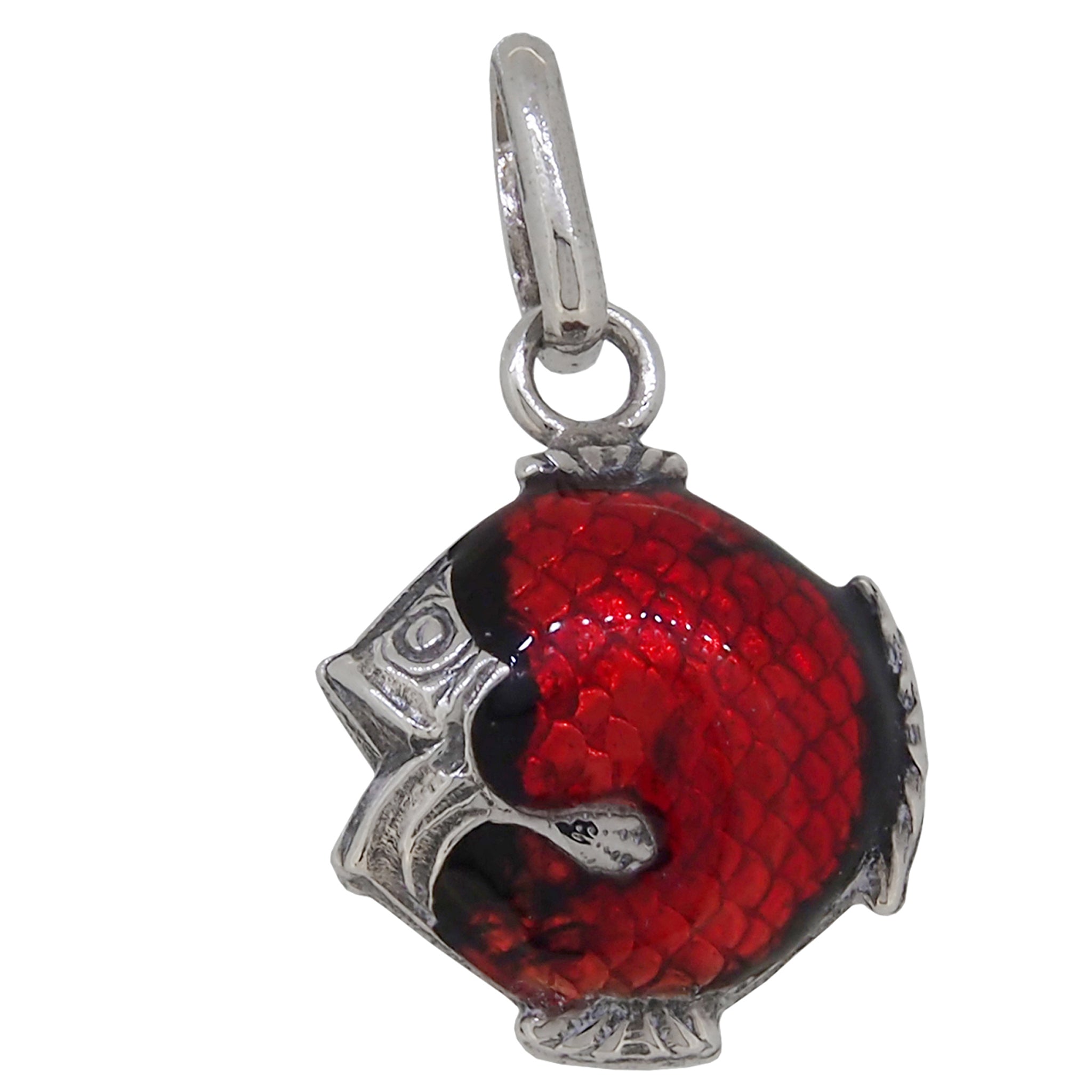 A modern, silver, red enamel set fish pendant.
