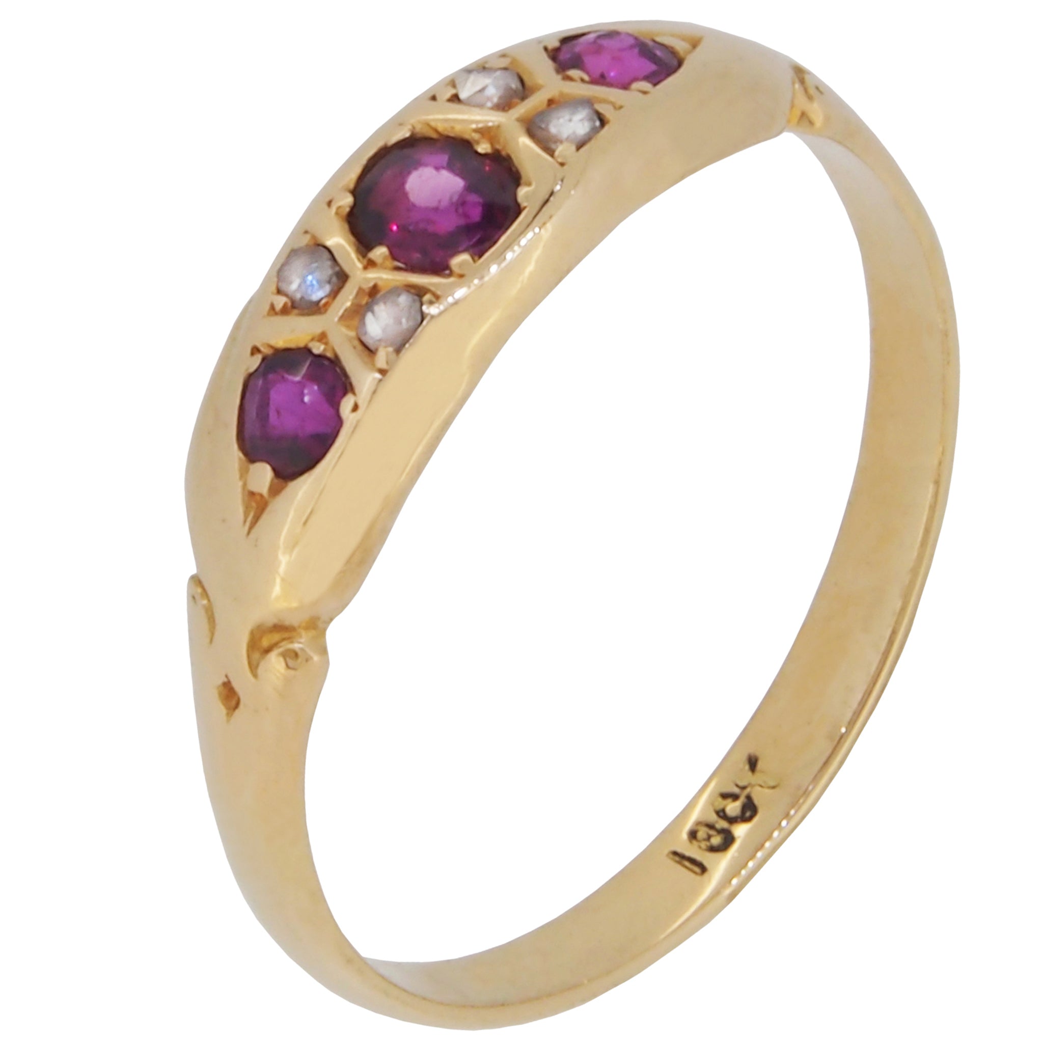 An early 20th century, 18ct yellow gold, ruby & diamond gypsy set, seven stone ring.