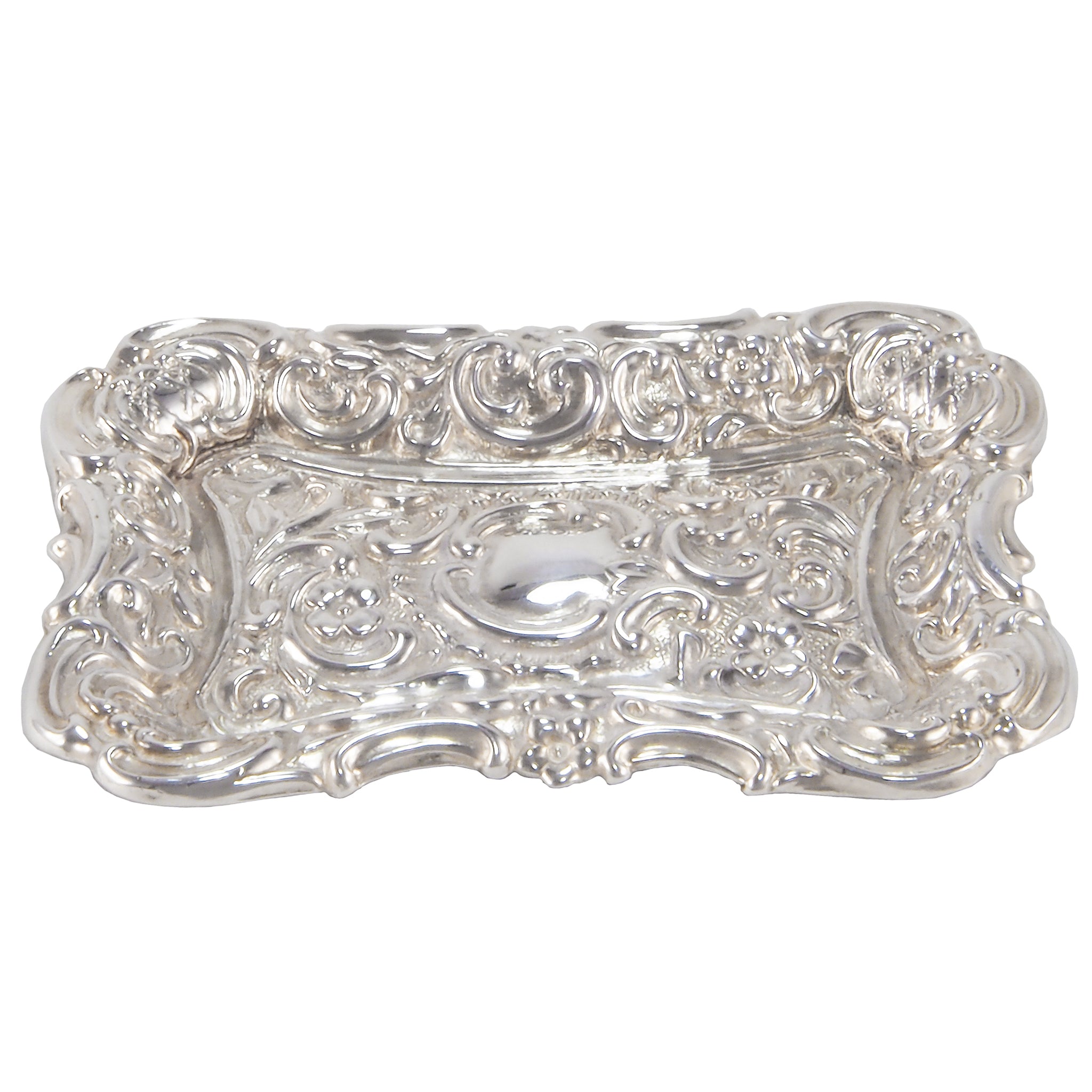 A Victorian, silver, rectangular, embossed pin tray.