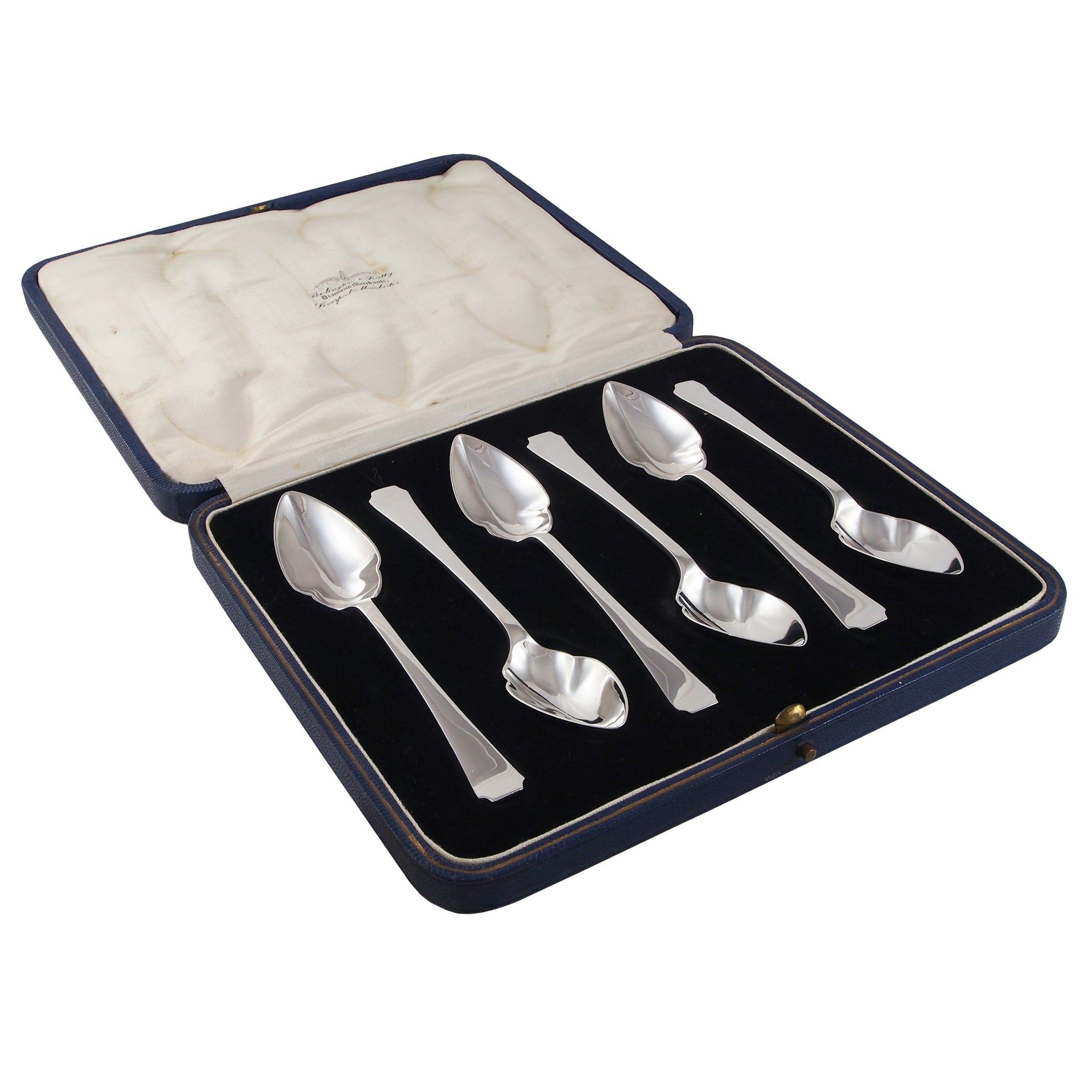 Six early 20th century, silver grapefruit spoons & fitted case.