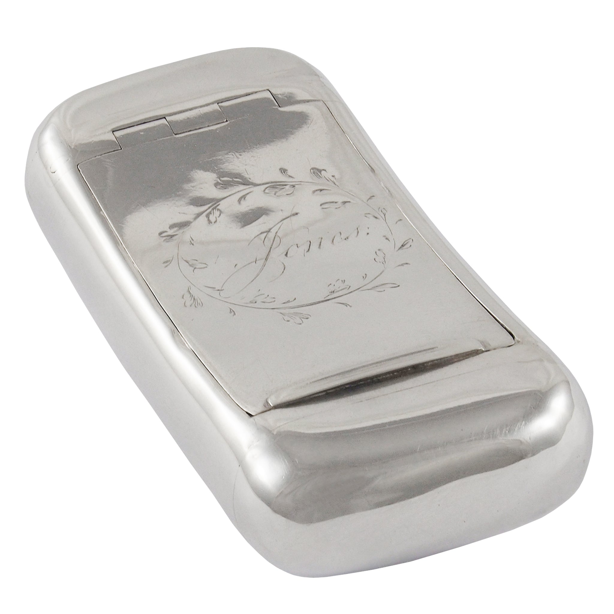 Engraved on the lid with the name 'Jones' inside a leaf pattern cartouche.