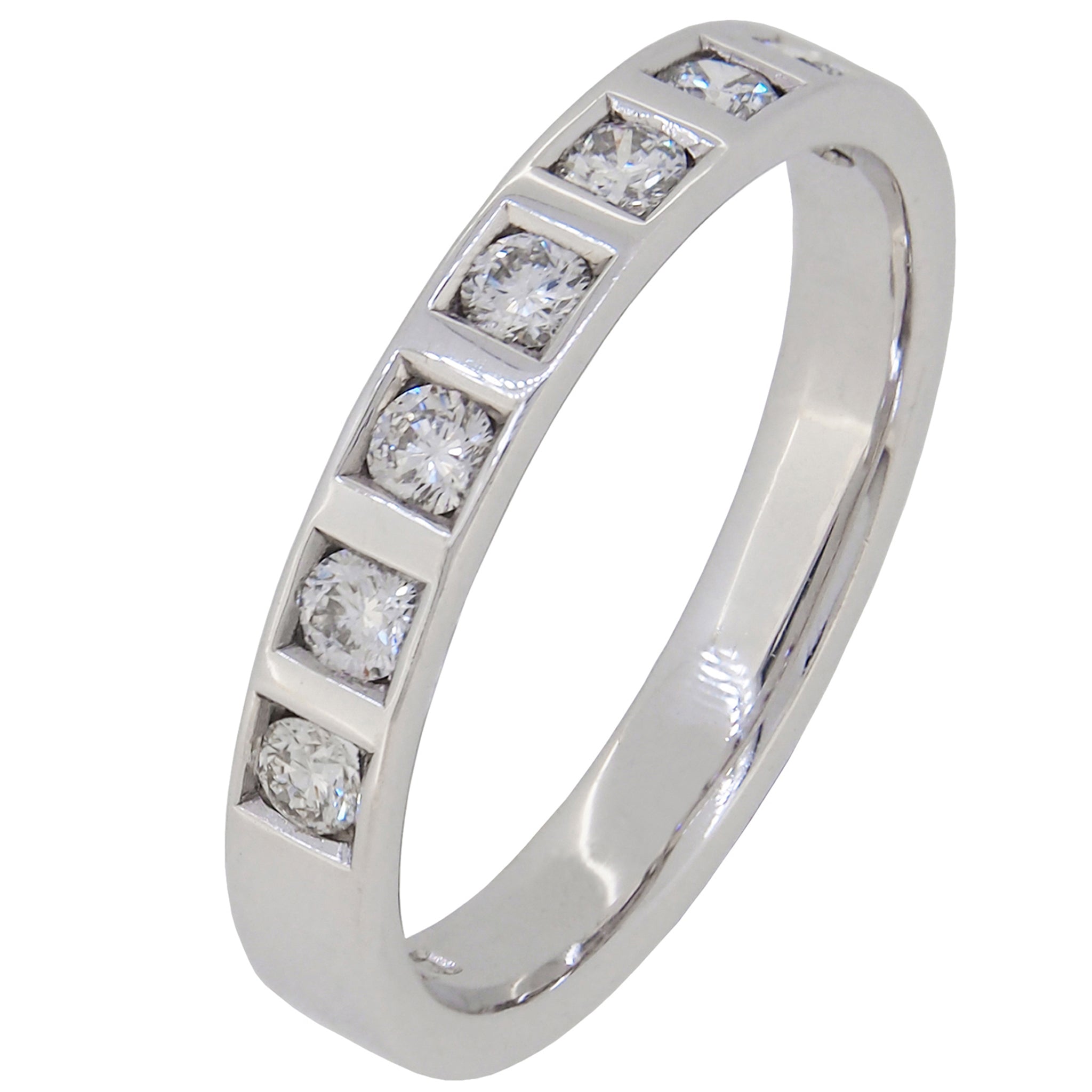 A modern, 9ct white gold, diamond set, seven stone half eternity ring.