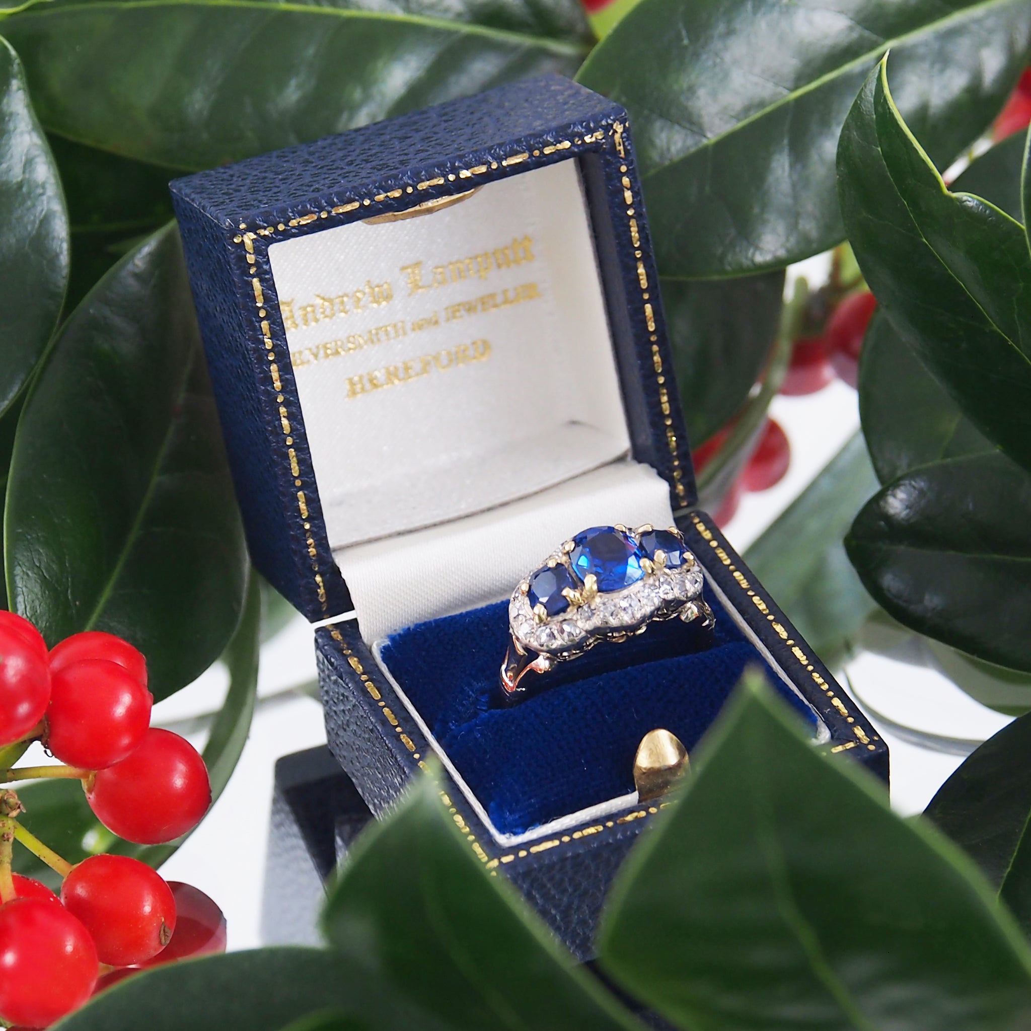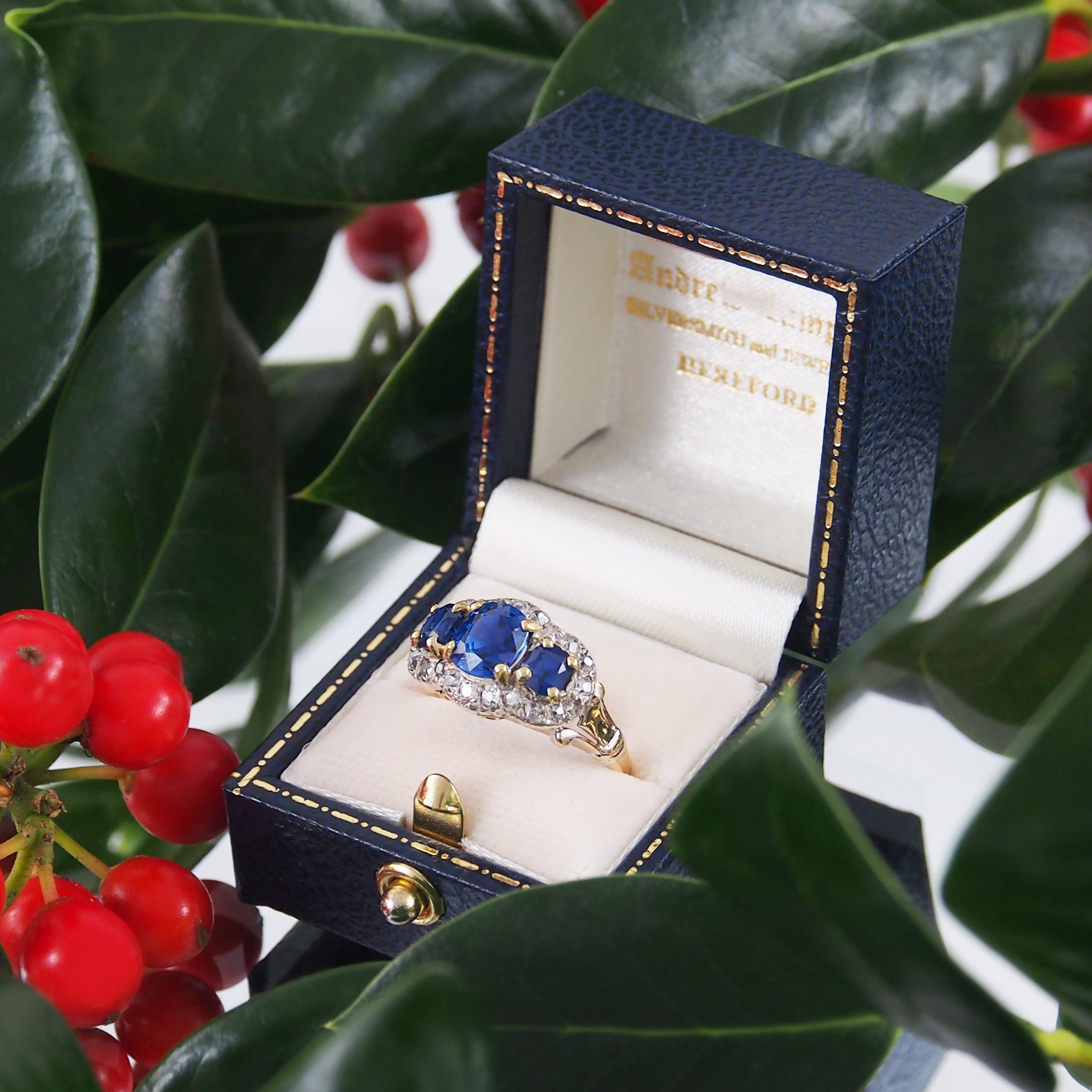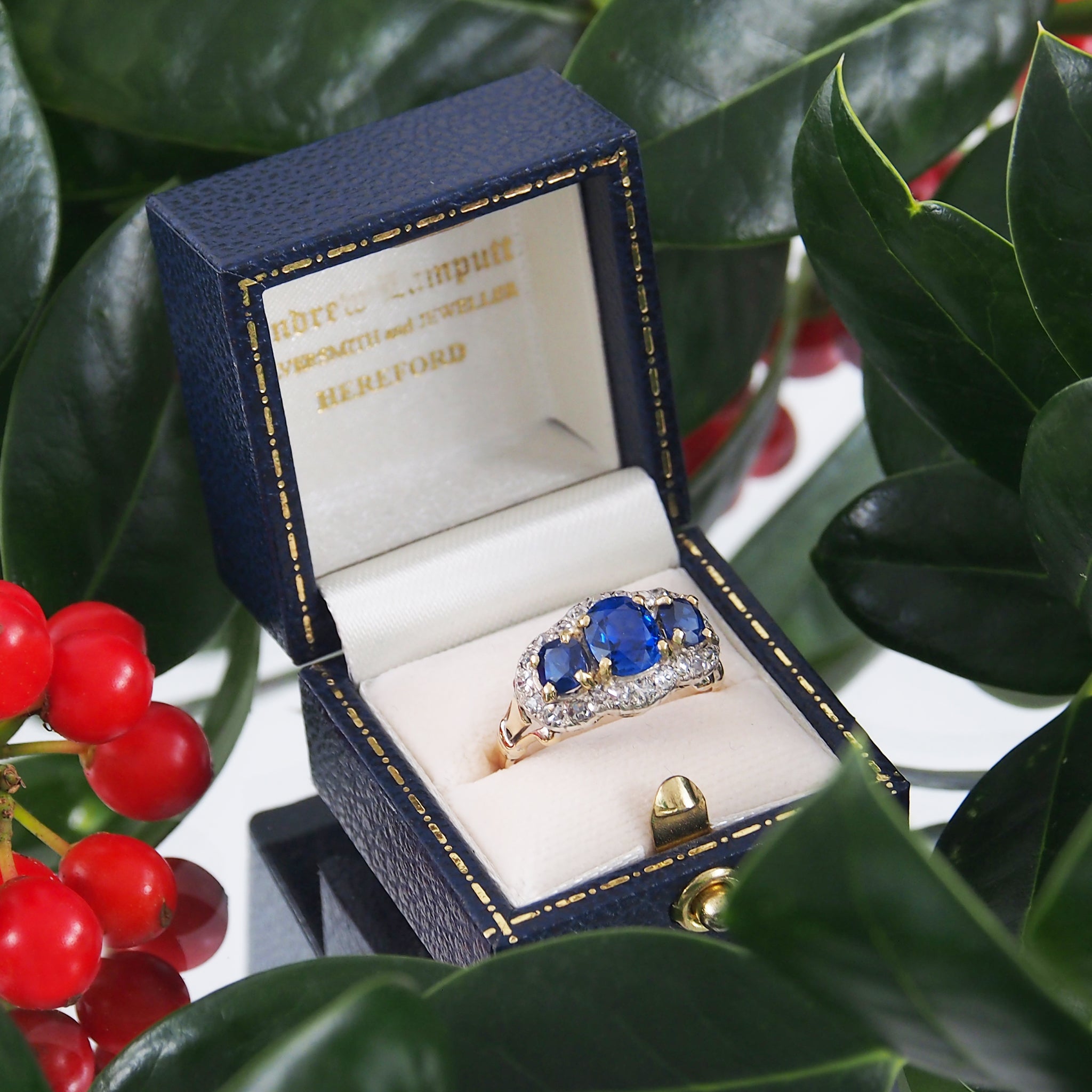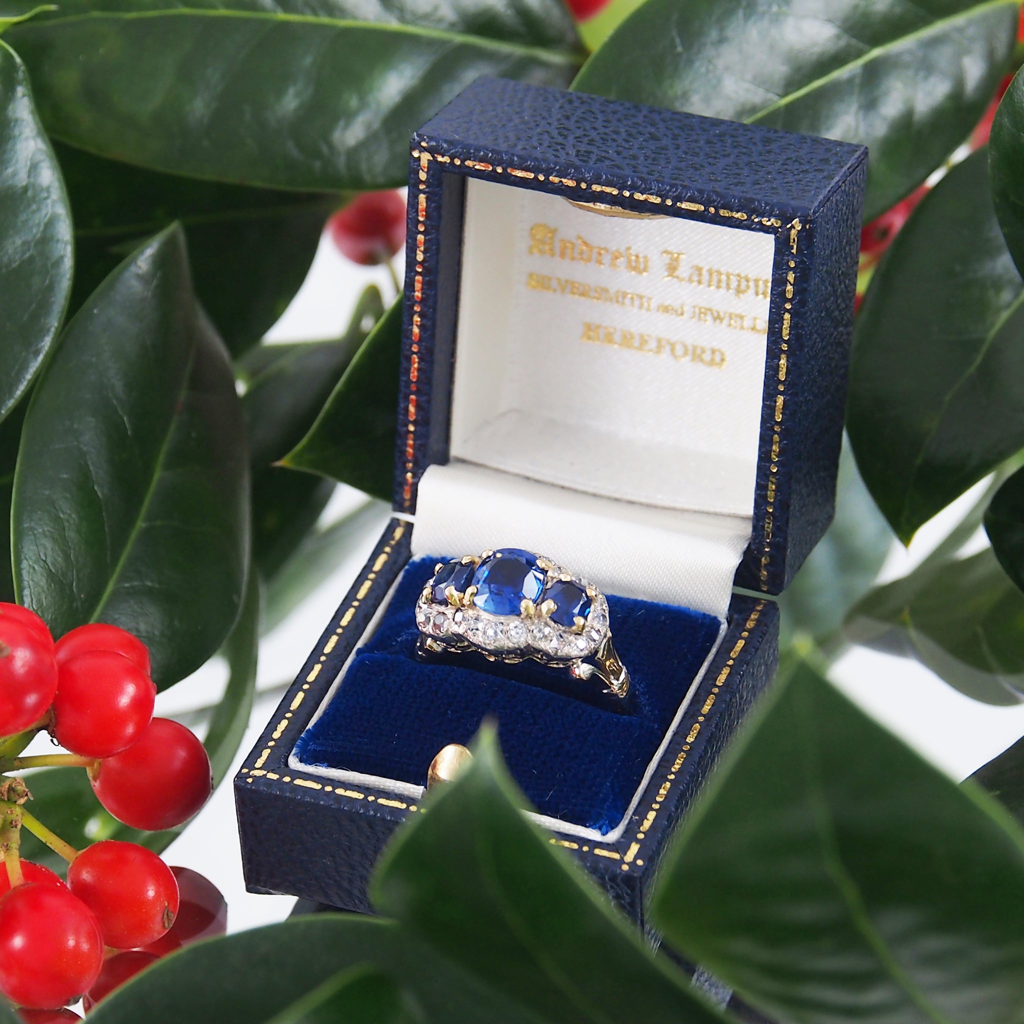 An early 20th century, 18ct gold, sapphire & diamond set triple cluster ring.