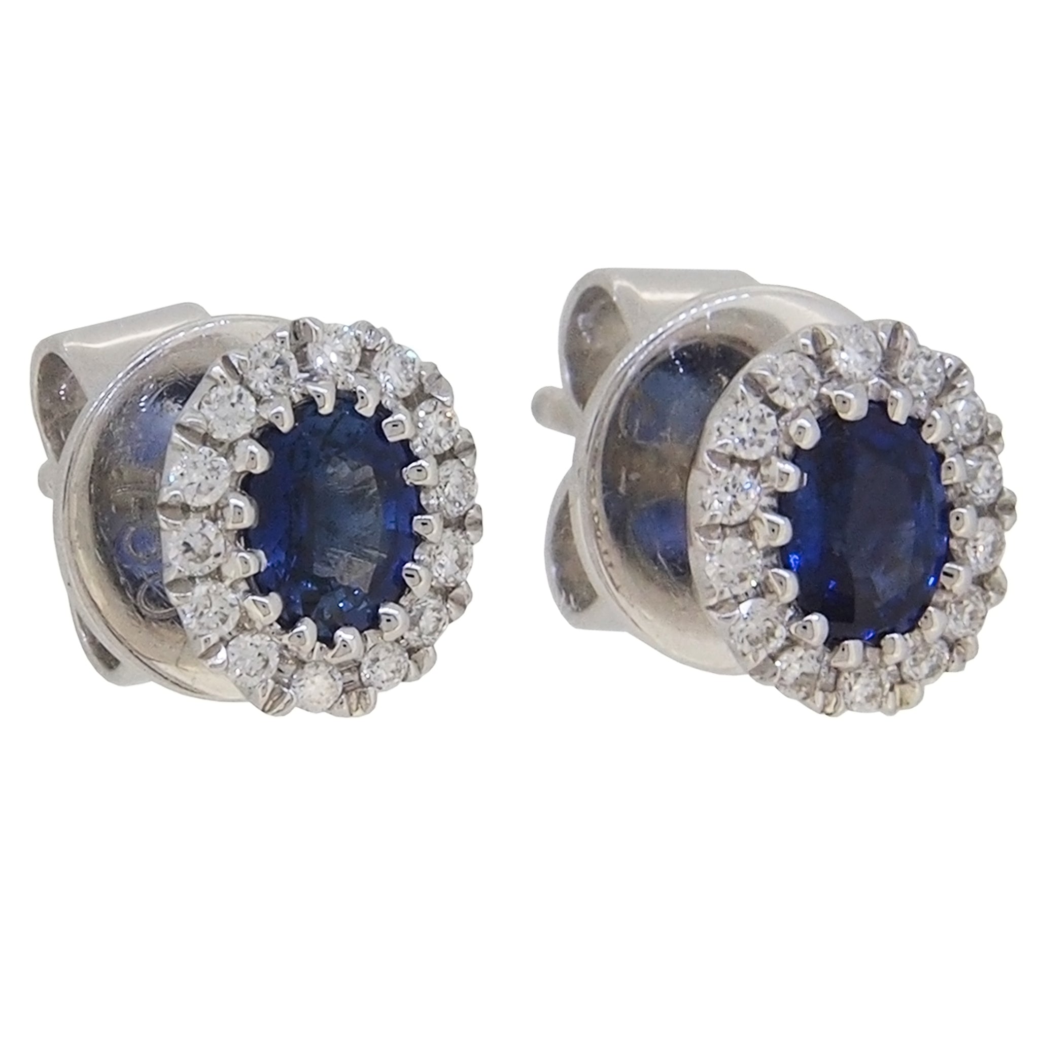 A pair of modern, 18ct white gold, sapphire & diamond set cluster stud earrings.