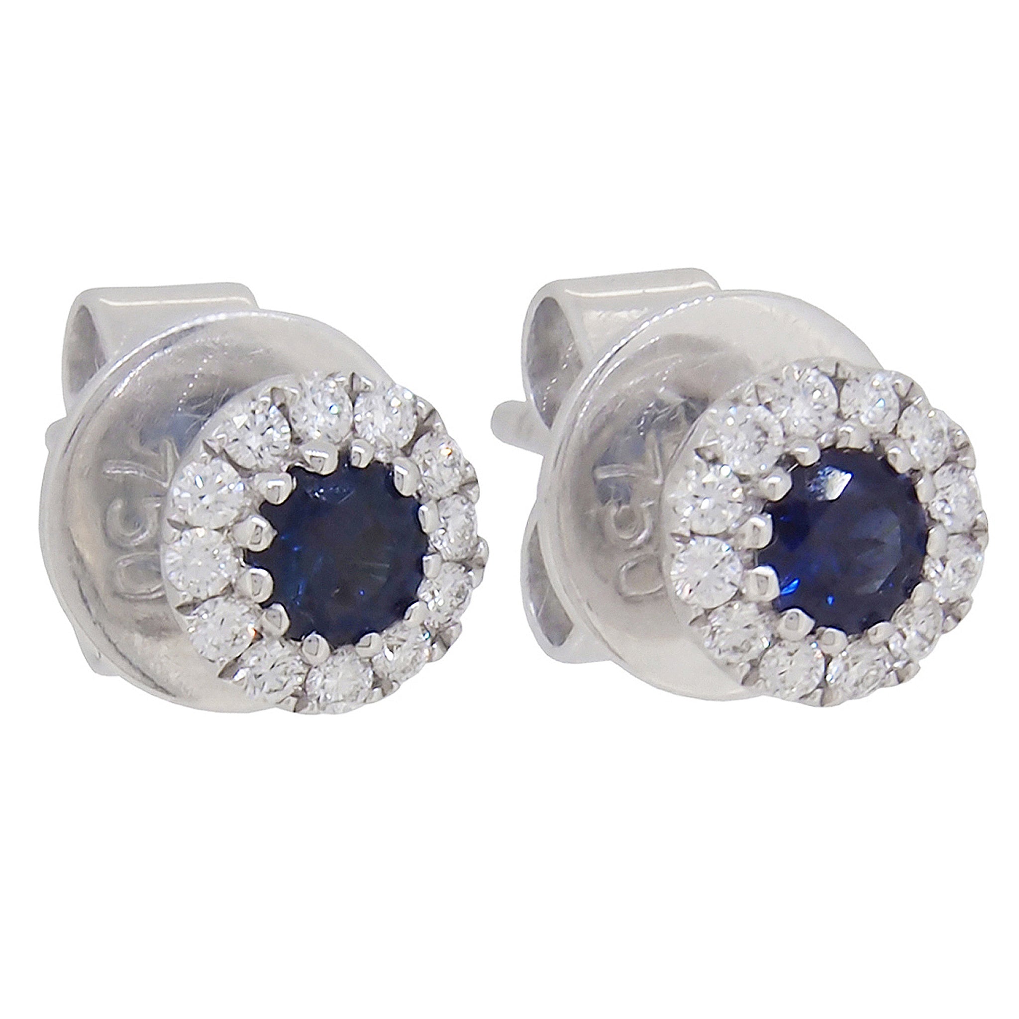 A pair of modern, 18ct white gold, sapphire & diamond set cluster stud earrings.