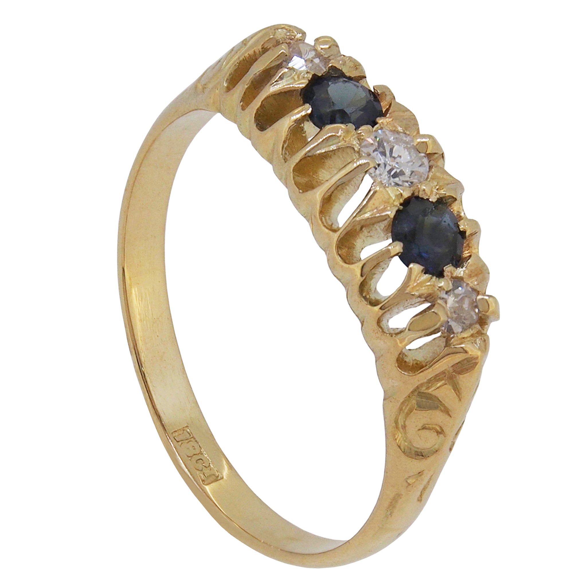An early 20th century, 18ct yellow gold, sapphire & diamond set, five stone, half hoop ring.