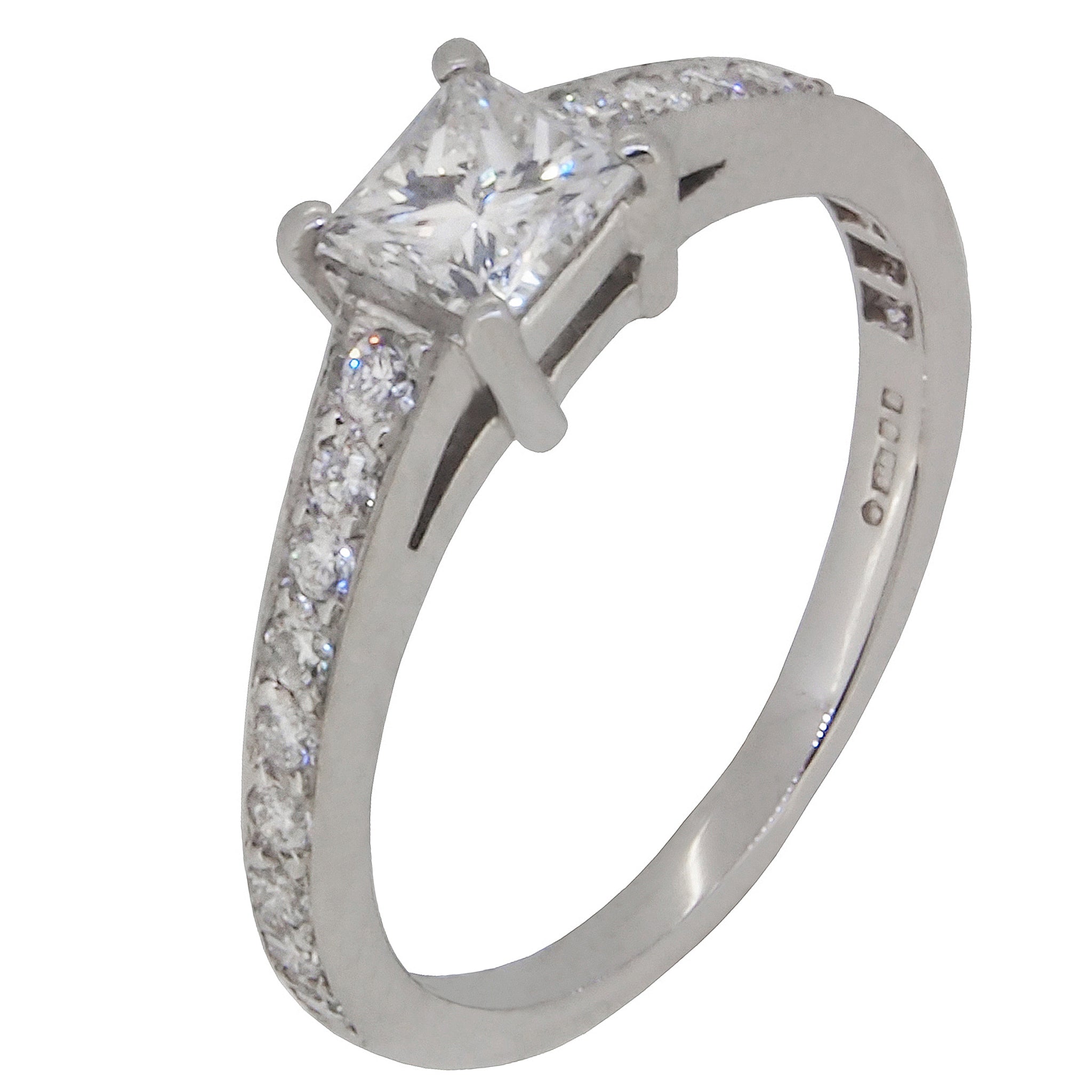 A modern, platinum, diamond set solitaire ring.