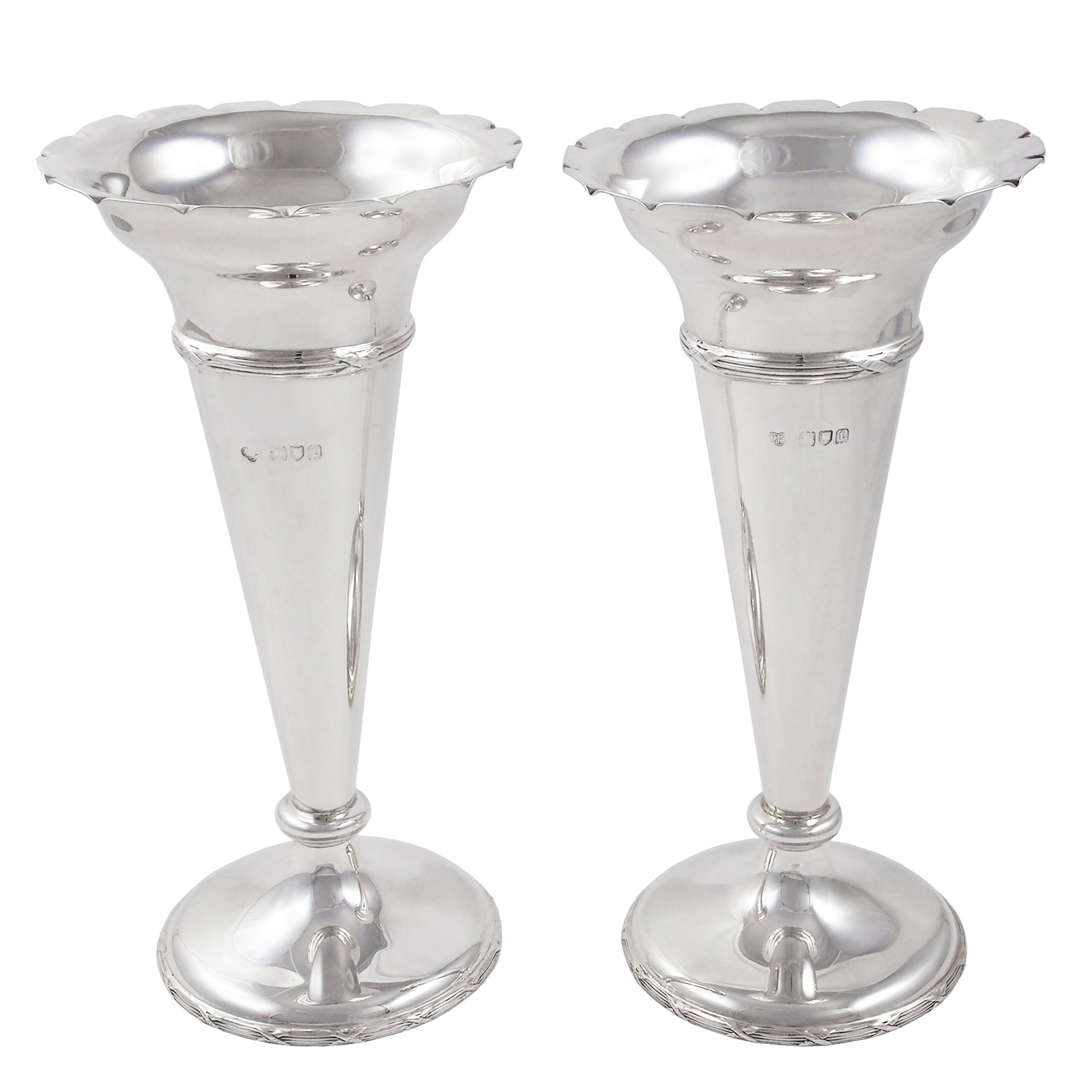 A pair of Edwardian, silver vases.