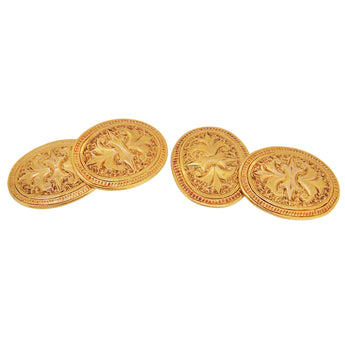 A pair of Victorian, 15ct yellow gold, chased oval cufflinks with figure of eight links.