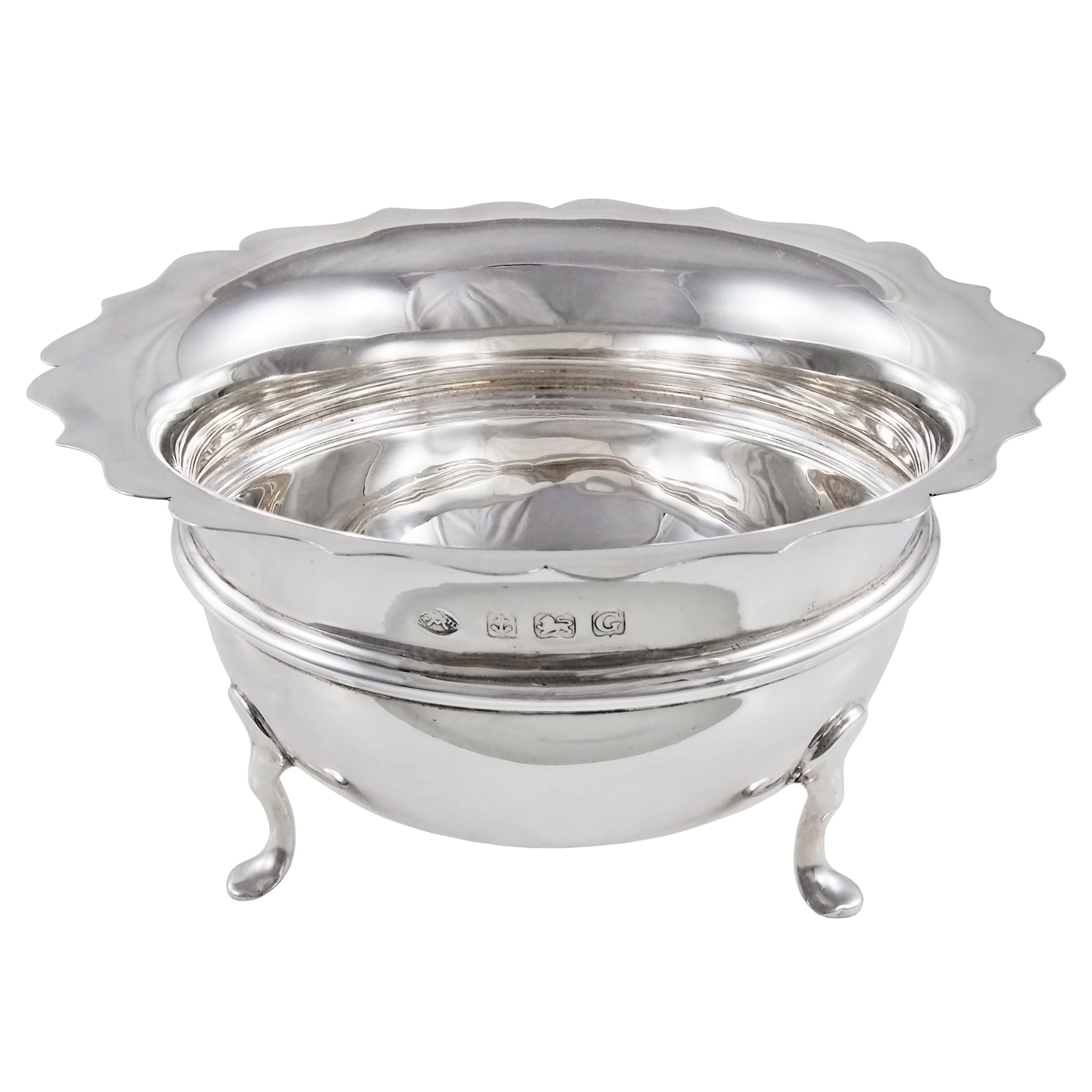 An early 20th century, silver, circular sweet bowl on three feet.