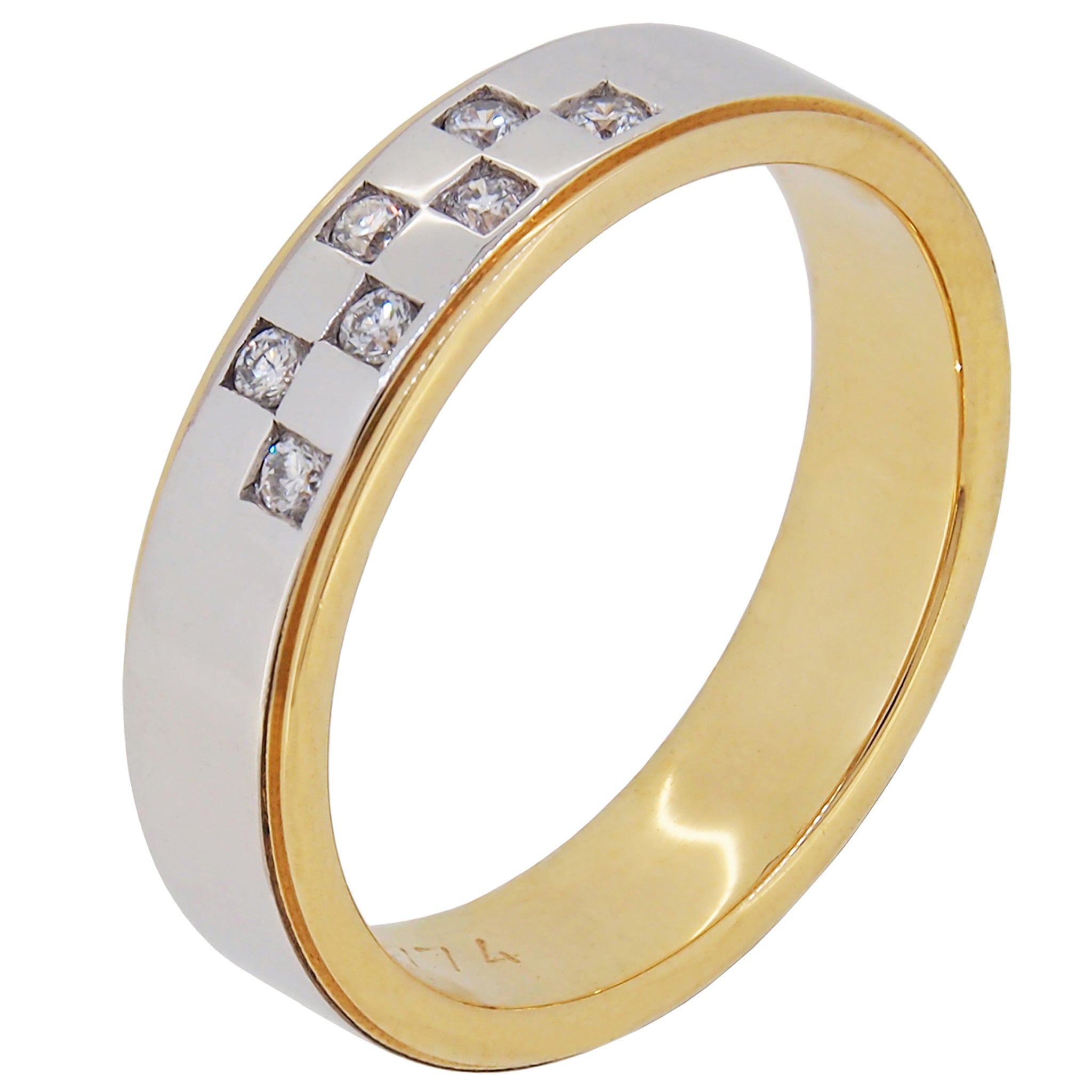 A modern, 18ct white & yellow gold, diamond set, seven stone wedding ring.