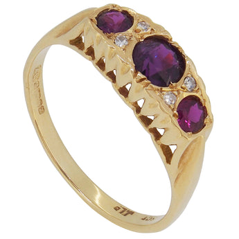An early 20th century, 18ct yellow gold, ruby & diamond set, seven stone ring.